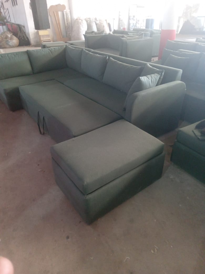 3 Piece Sofa Set Upholstered in rich forest green fabric with matching cushions, this trio blends luxury and comfort. Its soft curves and deep seating make it ideal for formal lounges or reception spaces, with an inviting tone that balances classic elegance and modern depth.